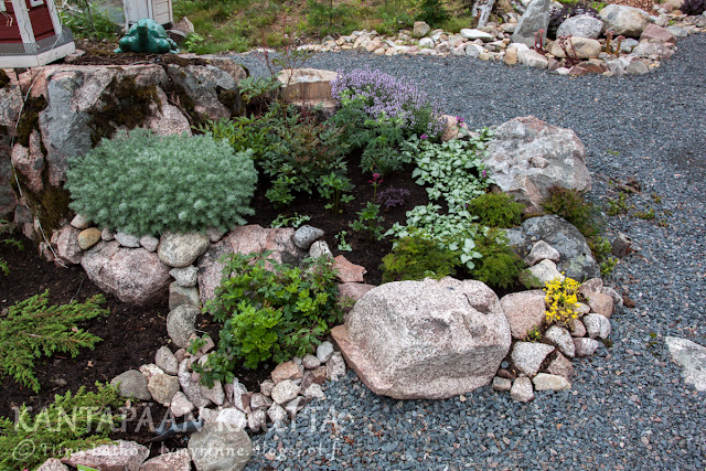 Kasvivalintojen sopivuus toisiinsa nähden on vahvistunut omassa mielessä ja olen todella tyytyväinen valintoihini. Ja vielä tyytyväisempi olen siinä vaiheessa kun tästä ei näy yhtään paljasta multaa vaan kasvit ovat täyttäneet alueen kokonaan. Ohotanmarunan taimet ovat myös niin runsaat, että saatan niistä toisen siirtää jo tänä kesänä muualle, sillä yksi vaikuttaisi täyttävän enemmän kuin hyvin niille ajattelemani alueen; kaksi vierekkäin tönivät tällä hetkellä jo toisiaan "anna tilaa".